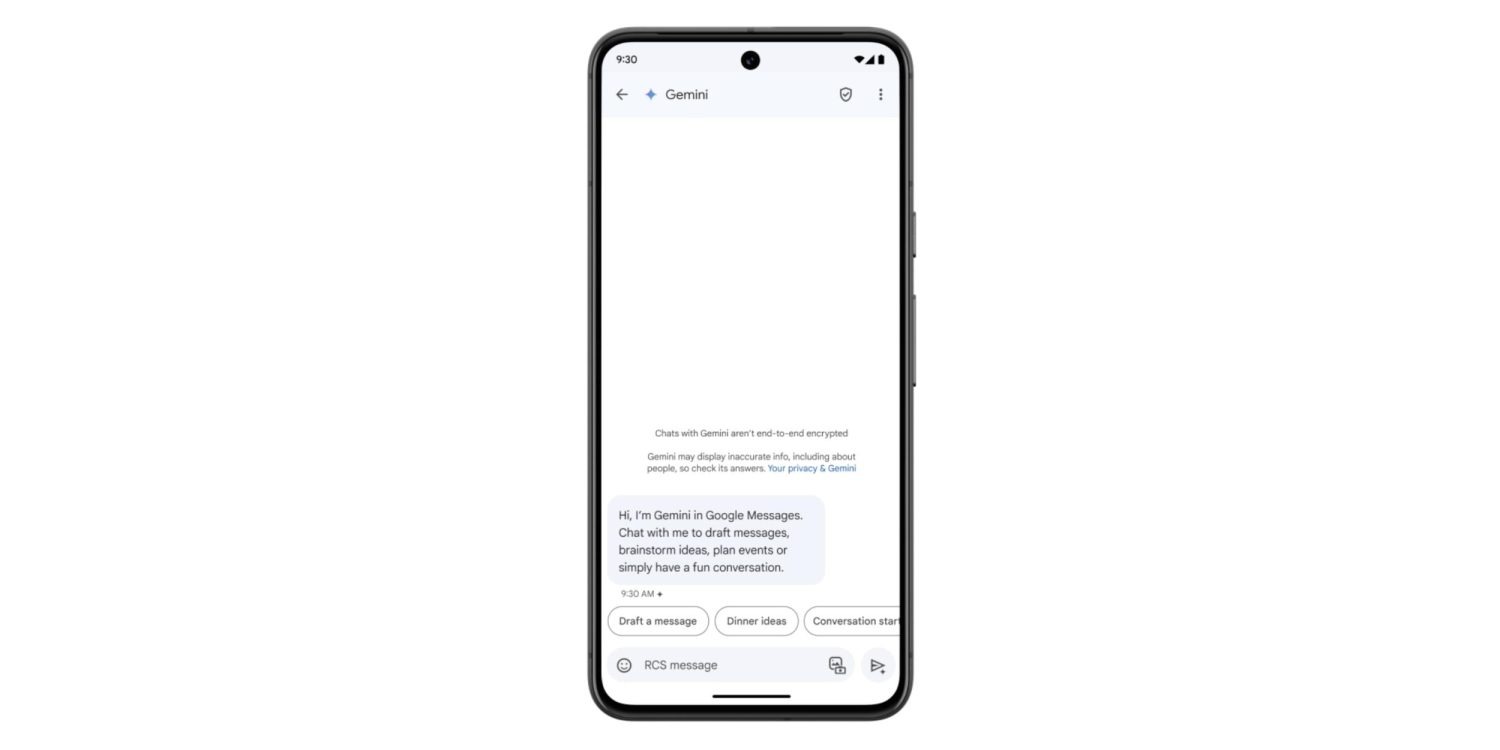 Gemini in Google Messages is rolling out globally — except to the EEA, UK, Switzerland, or India — with support for English and French in Canada. It has been available to betausers since March.