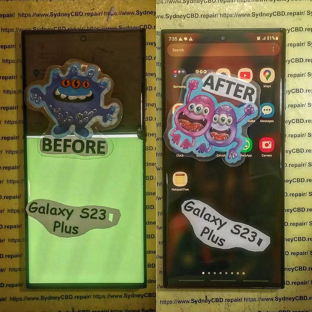 For the S23 Plus, “repair” almost always equals full screen replacement due to fused components.