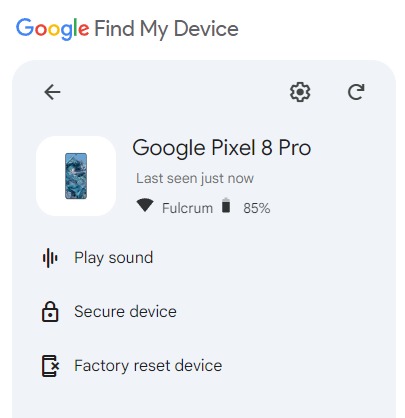 Once you make a selection, the map takes up more of the screen, while you get the same device information as before, including battery percentage and network. You can then Play sound, Secure device, and Erase device from the bottom of the sheet.