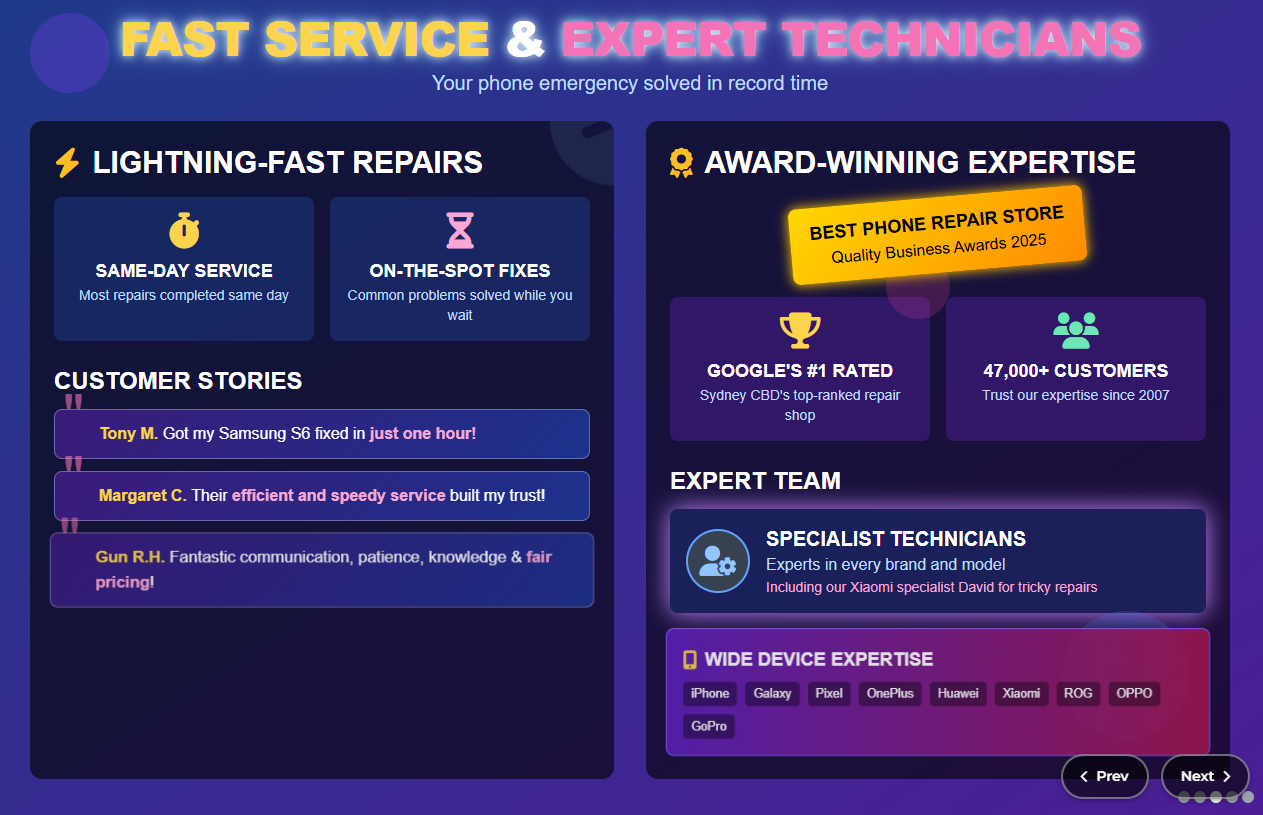 Sydney CBD Repair Centre is one of the most trusted repair shops with over 2000+ 5-star Google reviews and 6-time award-winning service.