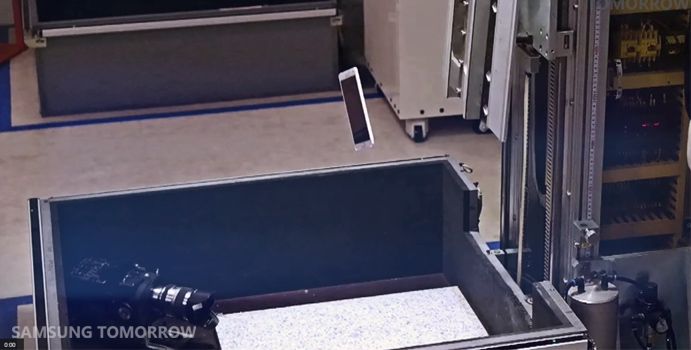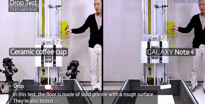Samsung makes and sells hundreds of millions of smart devices every year, and part of its efforts to make sure consumers can have peace of mind using it, Samsung runs rigorous tests both during and after development and production. We’ve previously shared a video that showed Samsung’s bend test on a Galaxy Note 4. Well, this one’s a Galaxy Note 4 drop test. Watch.